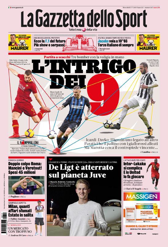 Le prime pagine dei quotidiani sportivi in edicola oggi.