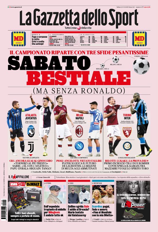 La Gazzetta dello Sport indica in quello di Bergamo l’anticipo del sabato più interessante dei tre. Ed ĆØ anche quello...