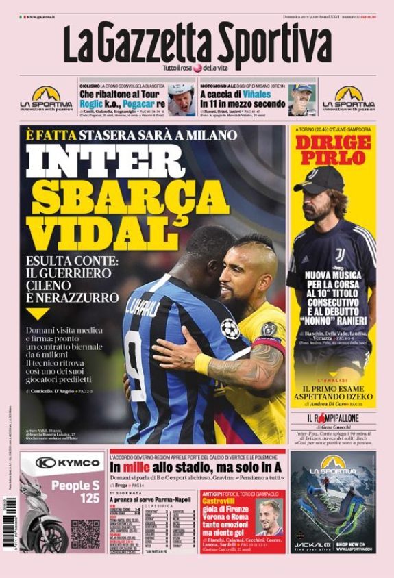 Le prime pagine dei quotidiani sportivi in edicola oggi, domenica 20 settembre 2020.