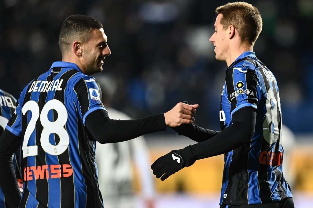 Teun Koopmeiners (Atalanta Bergamasca Calcio) celebrates with Jose Luis Palomino (Atalanta Bergamasca Calcio) after scoring his side’s third goal