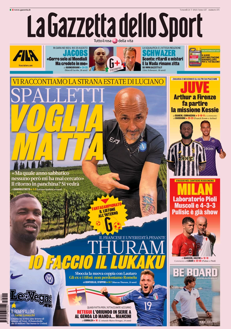 Le prime pagine dei quotidiani sportivi di oggi, venerdì 21 luglio