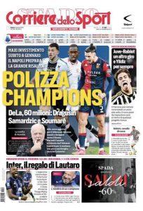 Le prime pagine dei quotidiani sportivi