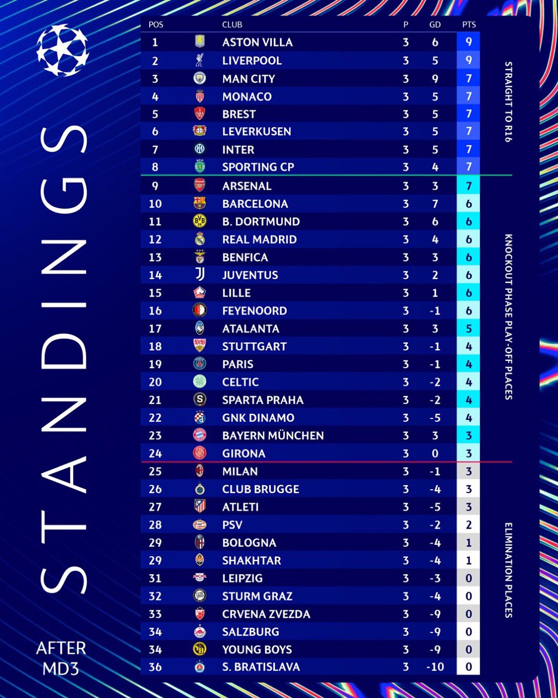 Basta gettare anche solo uno sguardo fugace alla graduatoria per scoprire che a questo punto, se fosse entrato quel maledetto penalty guadagnato da Ederson, a separare i nerazzurri dagli ottavi di finale sarebbe soltanto il computo di differenza reti e altre voci statistiche. Alle spalle di Liverpool e Aston Villa a punteggio pieno, stante anche le difficoltà di alcune big come Bayer, lo stesso Real Madrid e il Barcellona con cui bisognerà giocoforza andare a punti, anche Gian Piero Gasperini avrebbe potuto prendere la rincorsa dal gruppone a quota 7 con City, Monaco, Brest, il Bayer Leverkusen battuto in finale di Europa League il 22 maggio scorso a Dublino, l’Inter e lo Sporting Lisbona già avversario nel girone di El e poi eliminato agli ottavi di finale. Rimpianti? Vabbè che mancano ben 5 partite…
