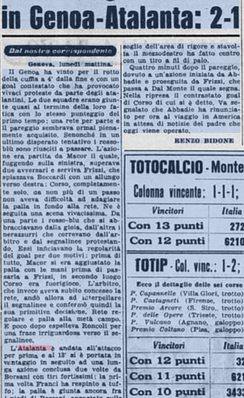 Tre compleanni fa era appena stato allontanato dalla panchina del Benevento. Figurarsi quanto scotta quella attuale, sotto il sedere di Fabio Caserta, il festeggiato ex atalantino di oggi, mercoledì 24 settembre, coi sui 47 anni. Riportare La Bari dove le compete, a ruota dell’altro esonero a Cosenza e della semifinale playoff del suo Catanzaro, persa con lo Spezia, è tremendamente difficile. Specie se si ha un solo punto, conquistato alla seconda giornata in casa col Monza a fine agosto, dopo aver perso oltre che col Milan nel sedicesimo di Coppa Italia anche a Venezia, Modena e Palermo. Insieme al reggino taglia la torta anche il bustocco Natale Borsani, 90 autunni e 19 partite da mezzala destra (a centrocampo, anche Angeleri, Vittoni e Annovazzi) con 1 gol, nel ko per 2-1 a Marassi col Genoa, il 10 febbraio 1957, allenatore Cina Bonizzoni sostituito nelle ultime sei da Carlo Rigotti. Divisosi la carriera con la natìa Pro Patria, cui tornava sempre, vinse senza giocare la Coppa Italia 1958 con la Lazio e (non) fece parte anche della Fiorentina.