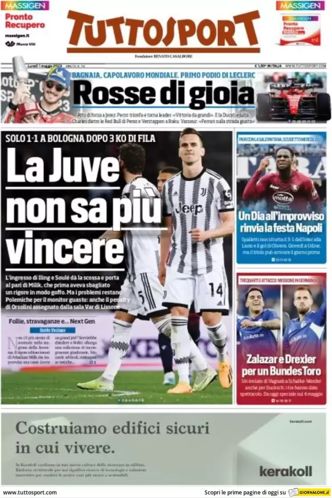 I titoli dei giornali sportivi di oggi, Primo Maggio ...