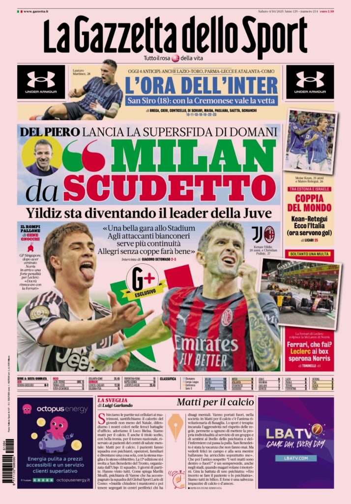 I titoli dei giornali sportivi in edicola oggi, 4 ottobre 2023