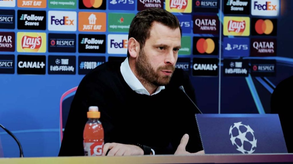 Il tecnico dello Sturm Graz Christian Ilzer si congratula con l’Atalanta per il raggiungimento del passaggio del turno nell’immediato postgara...